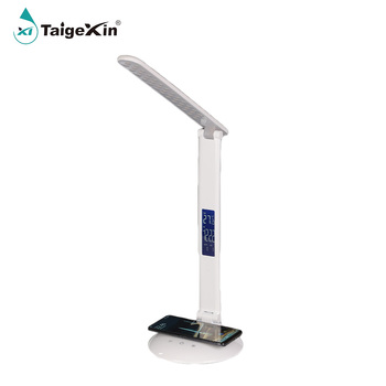 Лидер продаж, настольная лампа с беспроводной зарядкой, светодиодная настольная лампа с беспроводным зарядным устройством и часами/температурой/календарем